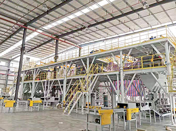 膩子粉生產(chǎn)線主要由原料儲存系統(tǒng),輸送系統(tǒng)、計量稱重配料系統(tǒng)、混合系統(tǒng)、氣動系統(tǒng)、除塵系統(tǒng)、包裝系統(tǒng)及自動控制系統(tǒng)...